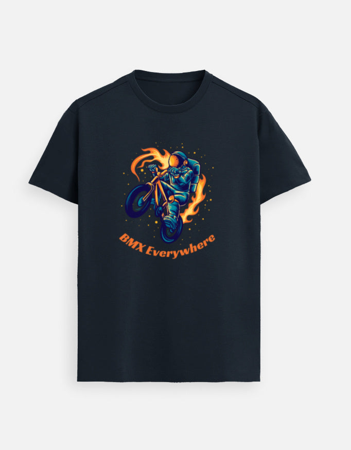 The Clasiclo BMX Everywhere Tee is made for those who live life in motion. Featuring a fiery astronaut pulling a BMX stunt through space, this design captures the thrill of freedom, passion, and fearless energy. Crafted for streetwear lovers and adrenaline seekers, it’s more than a T-shirt — it’s a mindset.